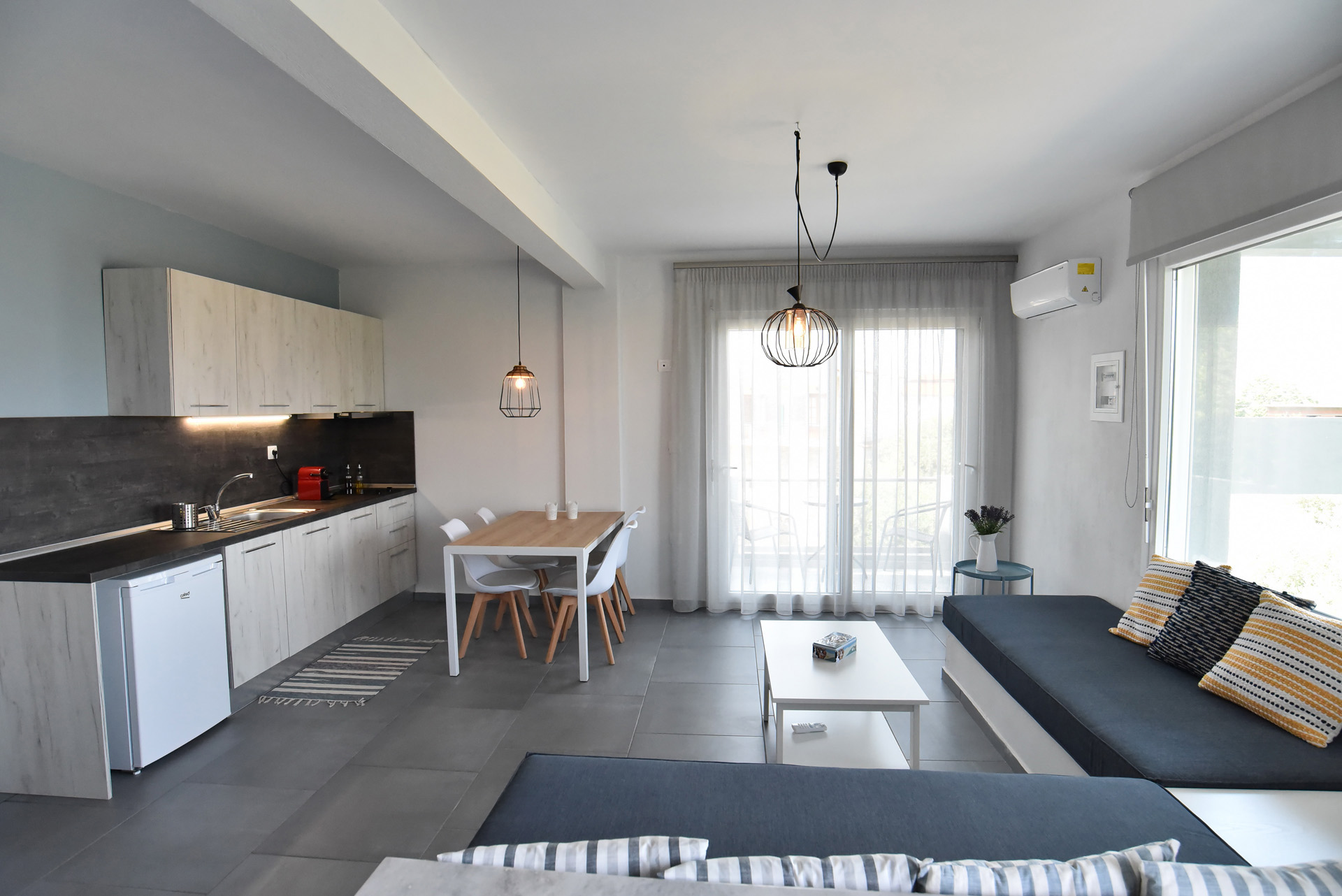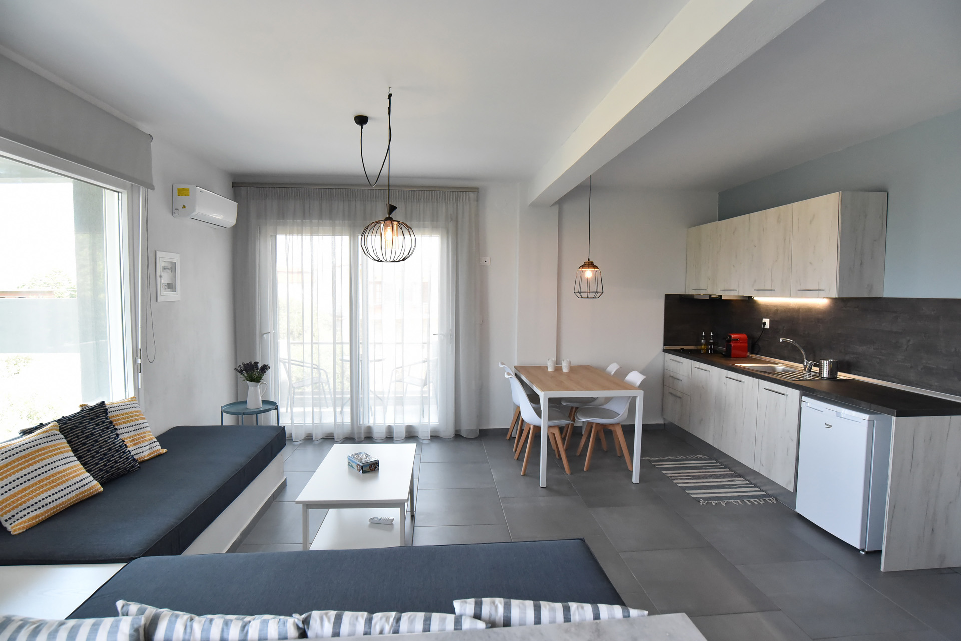 - Τα διαμερίσματα βρίσκονται 150 μέτρα από τη θάλασσα και στο κέντρο του χωριού Σκάλα Καλλιράχη, Θάσου.